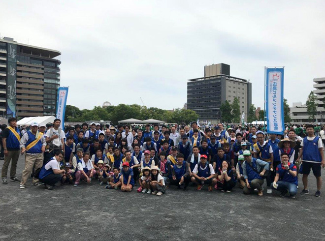 広島ビルメンテナンス協会の人たちと一緒に「散乱ごみ追放キャンペーに参加しました。 快晴のなか、それほど暑くもなく、無事に幟町小学校から旧市民球場跡地まで無事にゴミを探しながら?歩くことができました。毎回のことですが、私たちの清掃する姿をみで、一人でも多くの人が、ゴミを捨てない気持ちになっていただければと、心の中で念じながら歩きました。